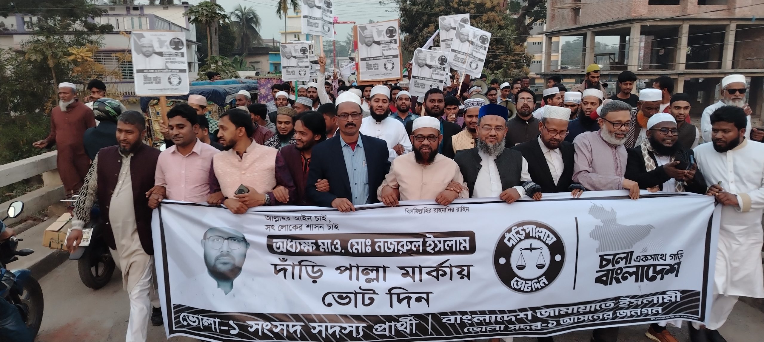বোরহানউদ্দিনে মানববন্ধন নারীদের বাধাঁ ও হেনস্তা এবং নির্যাতন নির্বাচনীয় প্রচারে কাজে – মহিলা জামায়াতে ইসলামী বোরহান উদ্দিন