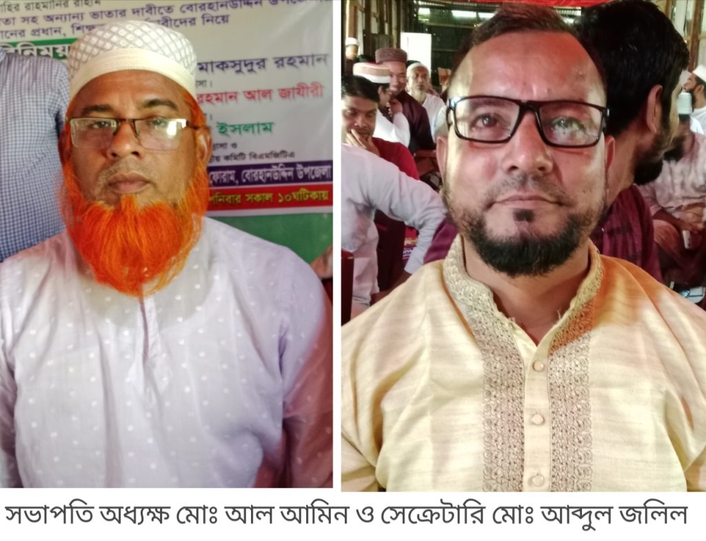 সভা শেষে বোরহানউদ্দিন উপজেলা আহ্বায়ক কমিটি গঠন করা হয়। এতে সভাপতি হয়েছেন হাকিমুদ্দিন ফাজিল মাদ্রাসার অধ্যক্ষ মো. আল আমিন, সিনিয়র সহ-সভাপতি হয়েছেন ছোট মানিকা ফাজিল মাদ্রাসার অধ্যক্ষ মো. সাইফুল্লাহ, সাধারণ সম্পাদক নির্বাচিত হয়েছেন কুড়ালিয়া দাখিল মাদ্রাসার আইসিটি শিক্ষক মো. আব্দুল জলিল। যুগ্ম সাধারণ সম্পাদক হয়েছেন মো. হারুন, সাংগঠনিক সম্পাদক হয়েছেন টবগী রাস্তার মাথা দাখিল মাদ্রাসার সহকারী শিক্ষক মো. রায়হান শরীফ এবং অর্থ সম্পাদক হয়েছেন বোরহানউদ্দিন কামিল মাদ্রাসার সহকারী আইসিটি শিক্ষক মো. জাহাঙ্গীর আলম। শিগগিরই পূর্ণাঙ্গ ৫১ সদস্য বিশিষ্ট কমিটি ঘোষণা করা হবে।