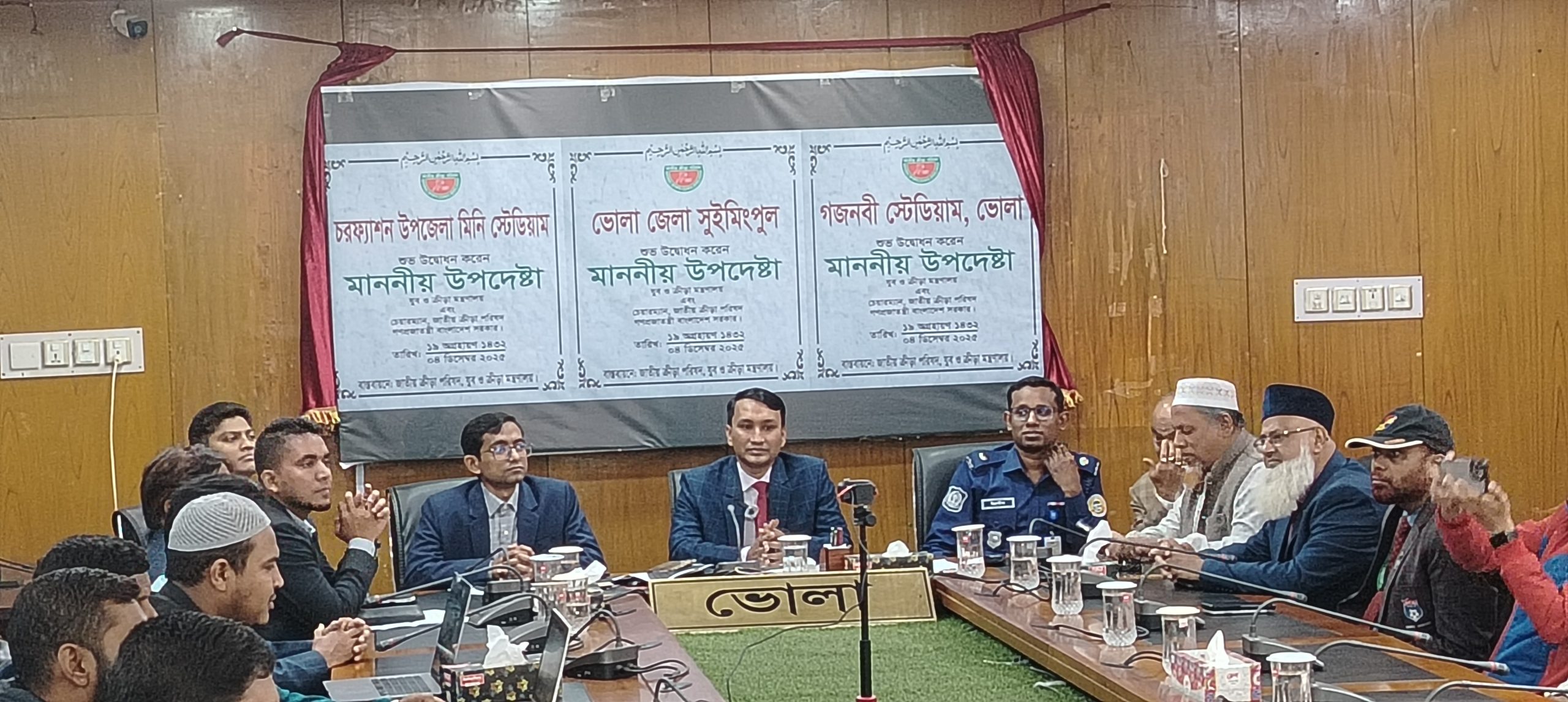 ভোলার ক্রীড়াঙ্গনে যুক্ত হলো নতুন তিনটি স্থাপনা—সদর উপজেলার গজনবী স্টেডিয়াম, চরফ্যাশনের মিনি স্টেডিয়াম এবং আধুনিক সুযোগ-সুবিধা সম্পন্ন জেলা সুইমিংপুল।